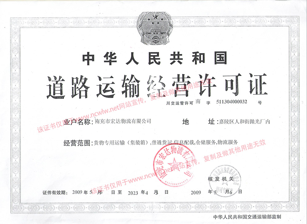 南充物流網(wǎng)(www.lclsv.com) 南充市宏達(dá)物流有限公司道路運輸經(jīng)營許可證